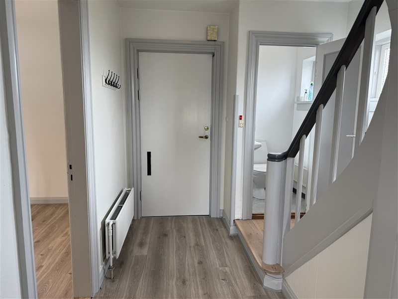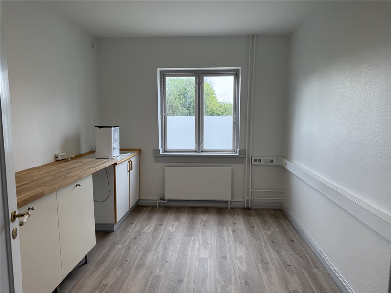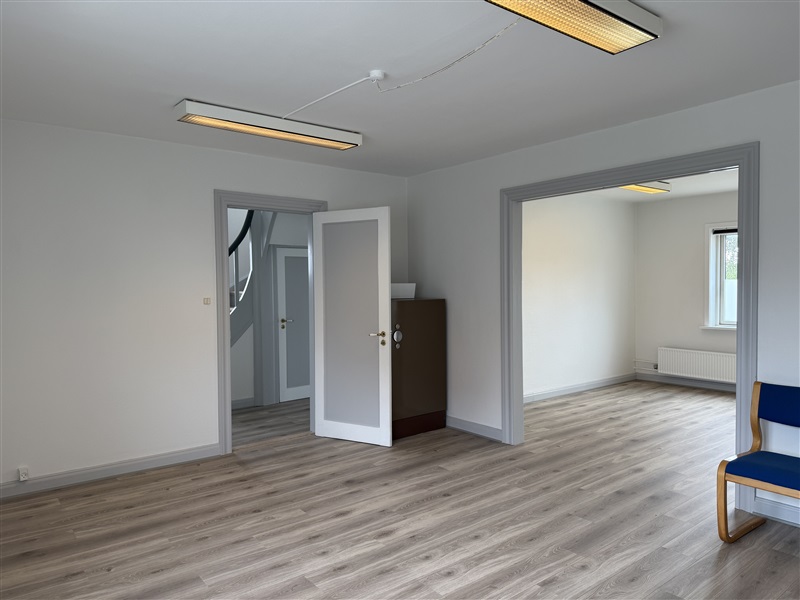 1.sal: Består af en pæn trappeopgang, en fordelingsgang og 2 individuelle lokaler ideelt til kontorplads med 2-4 personer.