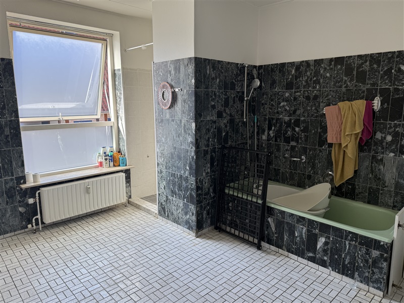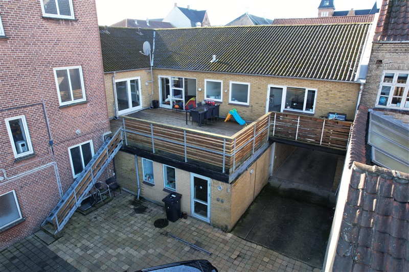 Samlet har ejendommen 2 enheder, som fordeler sig over en bolig og et butikslokale. Boligen på 1.sal består af 248 m2, og fordeler sig over 5 værelser, et stort køkken, 2 badeværelser, en meget stor stue og egen tagterrasse samt baggård. Lejligheden på 1.sal er i dag registeret til beboelse, denne har dog tidligere været anvendt til kontorlokaler. Yderligere vil lejligheden på 1.sal være oplagt til fremtidig opdeling til flere lejemål.