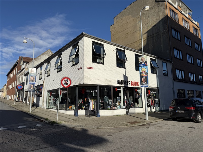 Ejendommens butikslokale i stuen, udgør samlet 250 m2. Butikslejemålet er attraktivt, både grundet dets beliggenhed som er meget central, samt størrelsen og parkeringsmulighederne rundtom butikslejemålet. Lokalerne er i dag udlejet til Red Barnet, med 6 måneders opsigelse, samt almindelig nettoprisindeksregulering. Red barnet har været lejere siden April 2017.