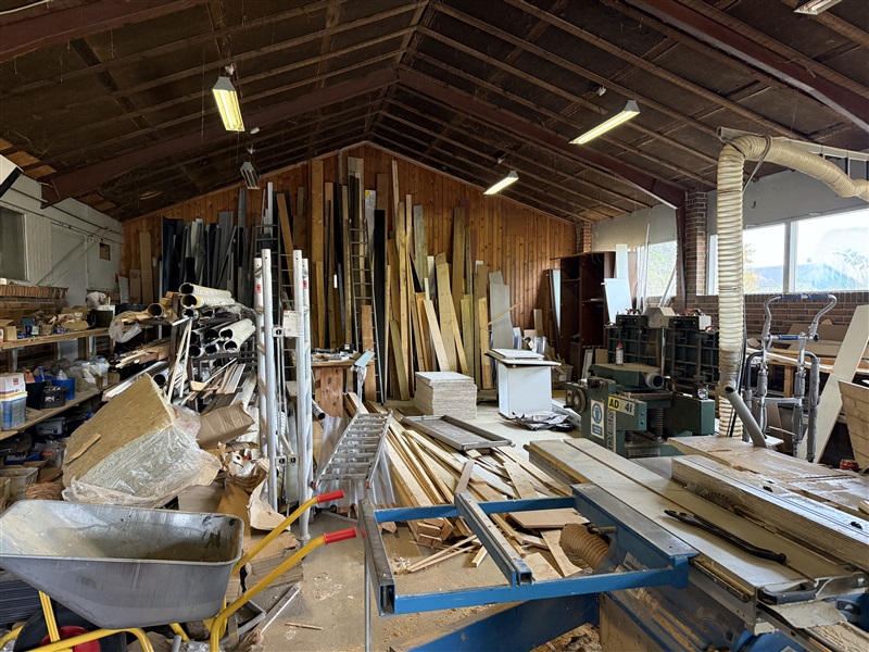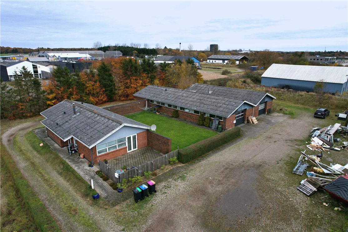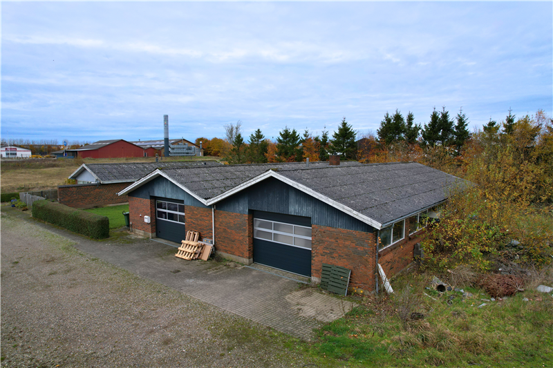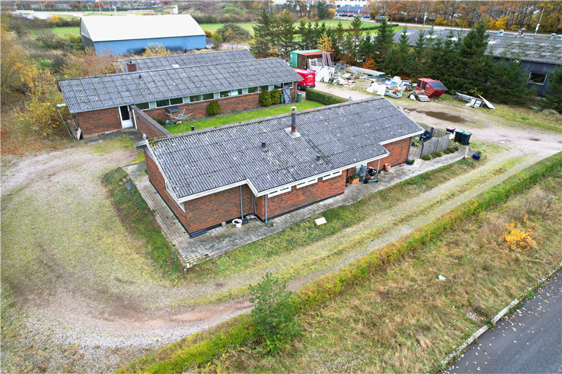 DK-Estate Erhvervsmægler udbyder nu denne funktionelle bolig- og erhvervsejendom på Tingvejen 13A i Skrydstrup, få minutters kørsel fra Vojens. Ejendommen henvender sig både til investoren og til den virksomhedsejer eller håndværker, der ønsker en kombination af god lagerkapacitet og selvstændig bolig på samme adresse.