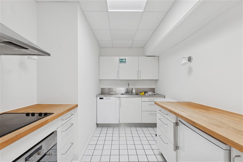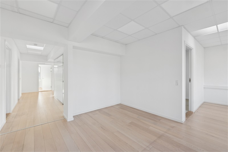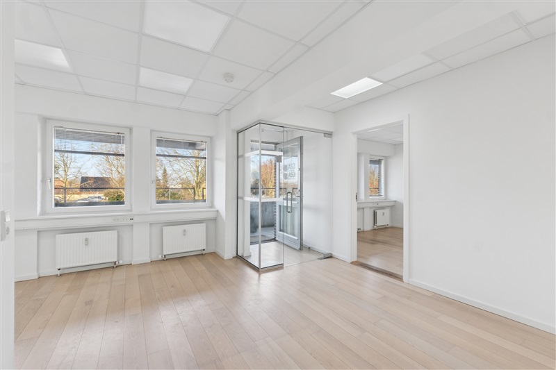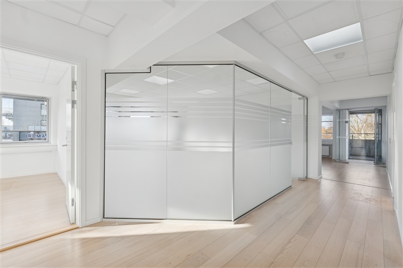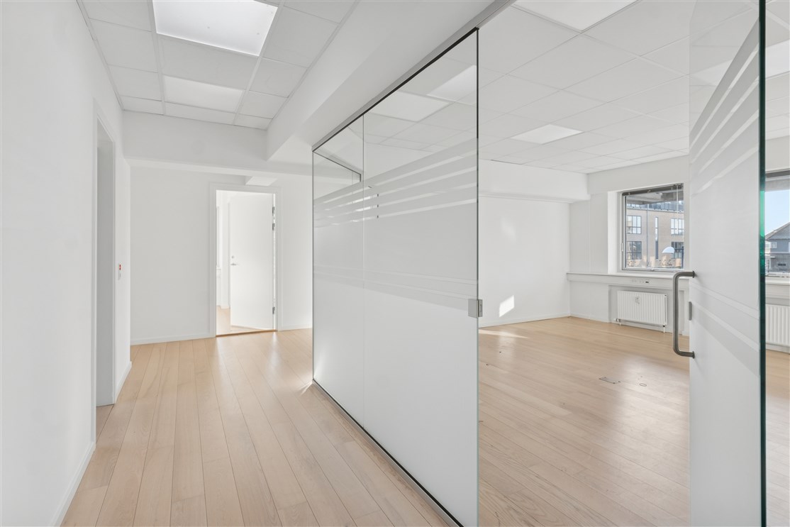 Indretningen består af seks separate kontorlokaler i varierende størrelser, hvilket giver stor fleksibilitet til både fokuseret arbejde, mødeaktivitet og teamopdeling. Alle rum er kendetegnet ved et flot lysindfald, der bidrager til en lys og indbydende atmosfære gennem hele arbejdsdagen. Udover de primære kontorarealer indeholder lejemålet eget funktionelt køkken samt toiletfaciliteter, hvilket gør enheden fuldt ud selvkørende.