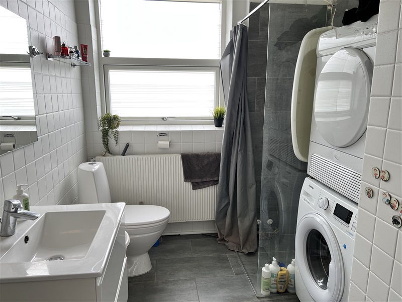 Bolig 112 m2: 2 store værelser samt nyere badeværelse og køkken. Yderligere er der en stor stue med tilstødende udestue samt egen tagterrasse og have. - Standen er god.