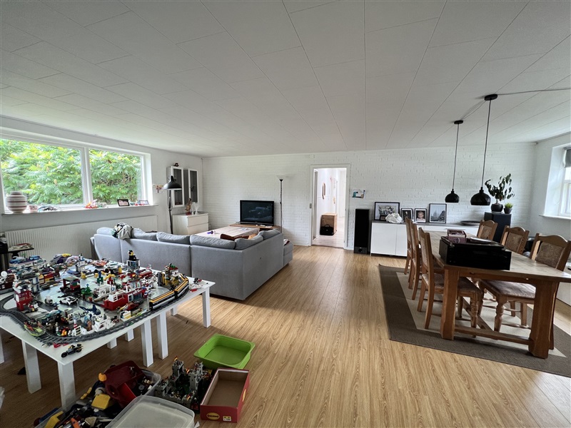Samlet har ejendommene 3 enheder henholdsvis, 1 bolig og 2 erhvervslejemål. Boligen er et særskilt rækkehus på 112 m2, rækkehuset er bygget i 1967 og er sidenhen renoveret og fremstår moderne. Til opvarmning af beboelses delen er der netop installeret en ny, luft til varmvandspumpe.