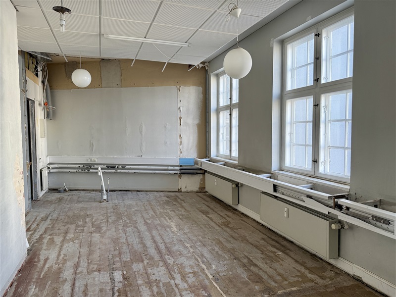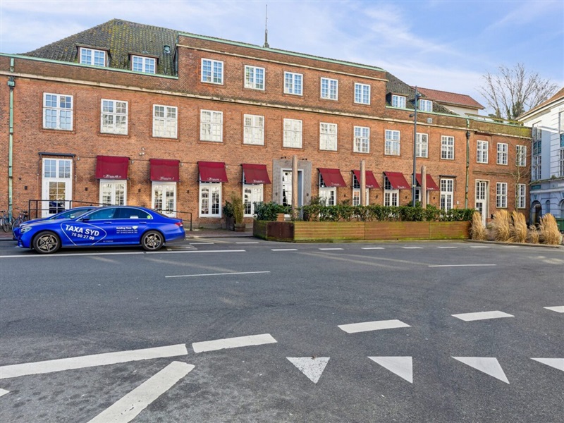 Med en markant og særdeles tilgængelig beliggenhed i Kolding udbydes nu et funktionelt erhvervslejemål velegnet til kontor eller klinik. Ejendommen er placeret umiddelbart ved banegården og i kort gåafstand til byens gågade, hvilket sikrer nem adgang for både medarbejdere og besøgende. Fra lejemålet er der udsigt mod Banegårdspladsen samt havneområdet, hvilket bidrager til et lyst og åbent arbejdsmiljø i en central del af byen.