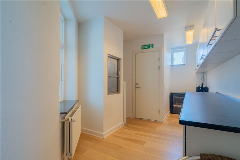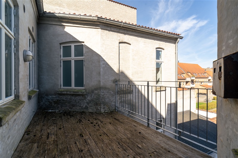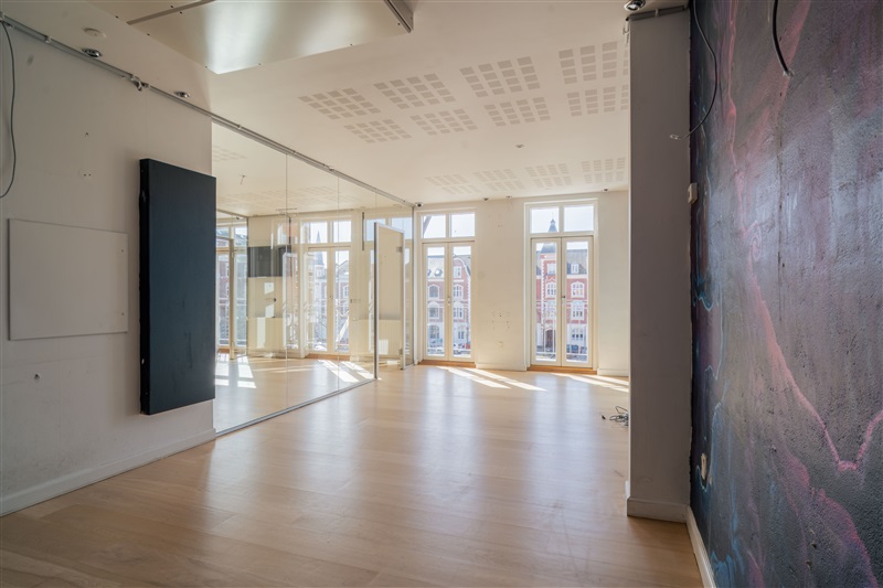 Lejemålet er samlet på 242 m2, og er fordelt over et stort kontor med tilstødende tekøkken og toilet. Yderligere er der både altaner på 1. og 2.sal på ca. 10 m2.