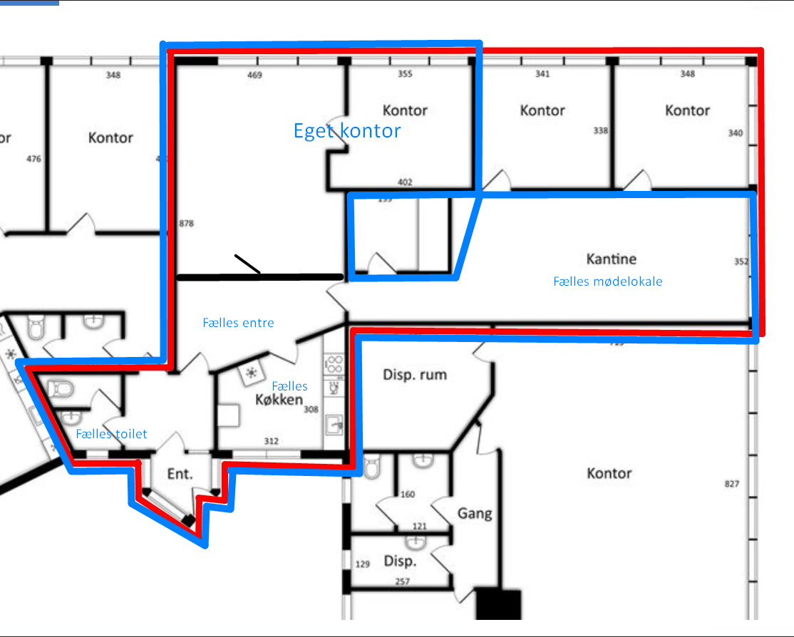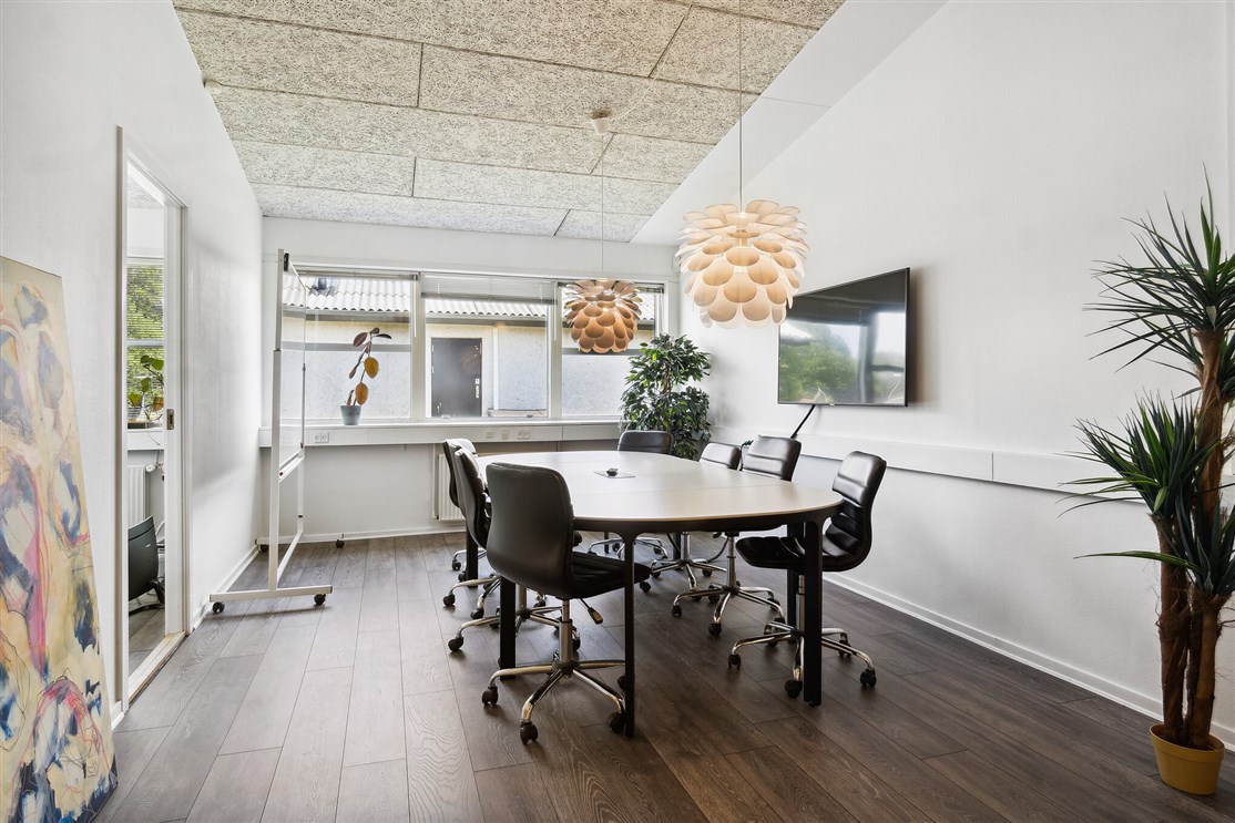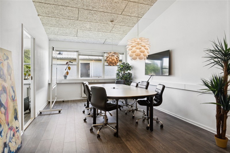 Kontoret har adressen Skomagervej 4L, og fremstår af nyere dato. Her er højt til loftet, rummelige lokaler og et nyere køkken. Lejemålet er fleksibel med bl.a. et lidt større og mindre kontorlokale samt spiseplads.
