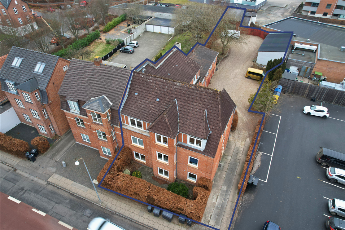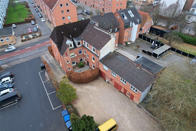 Ejendommen består af flere boliglejemål i gode og anvendelige størrelser, suppleret af tilhørende garager, som kan udlejet separat eller til lejerne. En af lejlighederne er beliggende i forlængelse af den primære bygning med orientering mod garagearealerne.